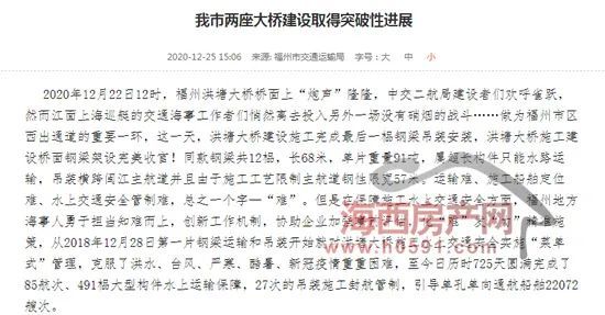 海西房产网(微信公众号:fjhxfcw)消息:12月25日,福州市交通运输局发布一则消息,透露福州洪塘大桥、新建福厦铁路乌龙江大桥取得突破性进展。