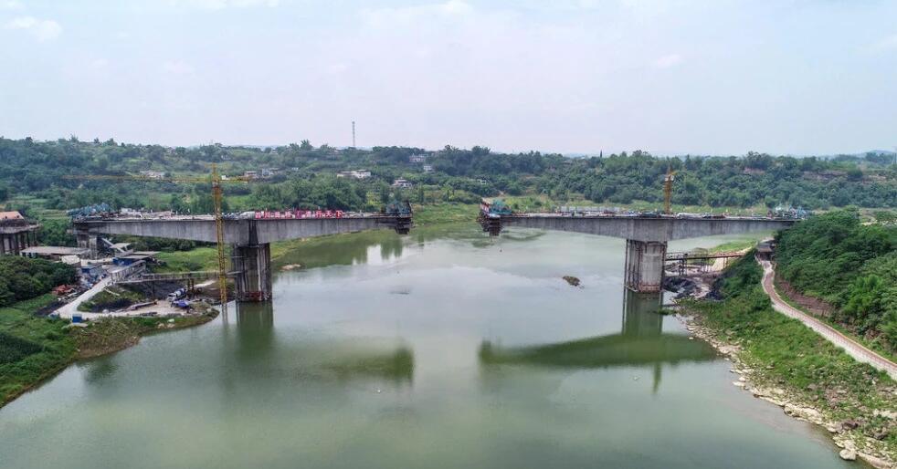 这座大桥就是胡市沱江大桥,连接龙马潭区胡市镇新市村和江阳区况场街道上坝村,主桥采用95+170+95米预应力砼连续梁桥,其中桥梁长度为447米,采用双向四车道标准设计建设,桥面宽度达到20.5米,整个大桥项目的总投资也达到了1.2亿元,但给两岸人民带来的利益将是长远的。