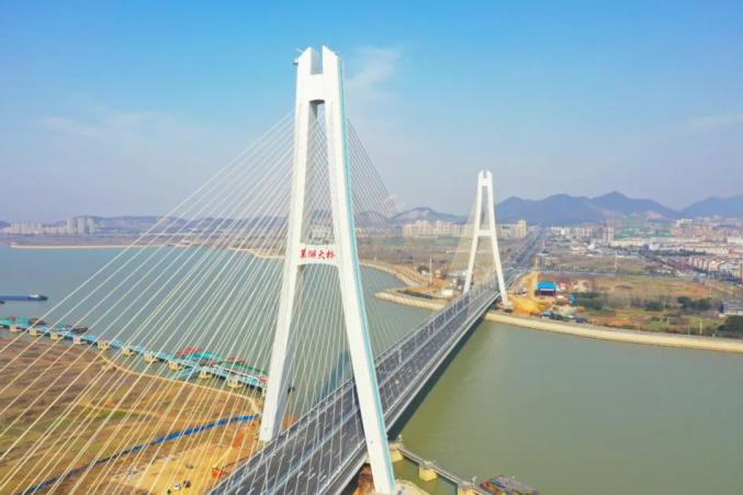 巢湖大桥于2018年1月12日正式开工建设,2020年9月28日主梁顺利合龙。大桥全长2149.66米,其中桥梁长度1122米,桥梁跨径460米,是目前安徽省最大跨度市政斜拉桥。