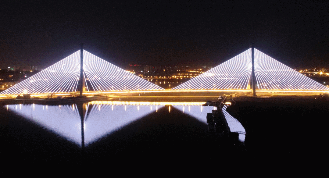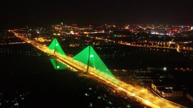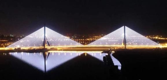 大桥景观照明采用了LED像素灯、LED洗墙灯等多种亮化手段相结合,通过点、线、面光互相衬托,运用灯光智能控制系统,动态展现出大桥的结构层次和宏伟造型,力求塑造出巢湖市地标性的夜景景观。