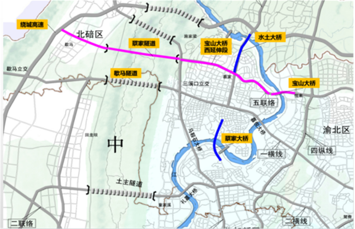 其中,铜罐驿大桥将连接九龙坡区西彭片区和江津区珞璜片区;支坪长江大桥是江津区与主城区连接的第四座大桥,起于小塆立交,止于绕城渝泸互通立交。