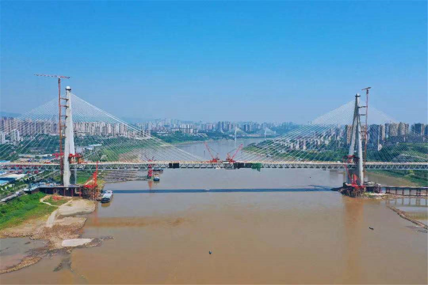 据了解,郭家沱长江大桥是双向八车道的设计,设计时速80公里,目前已经完成南北主塔封顶和南北锚碇主体的浇筑工作,实现全线贯通,预计2022年建成通车。