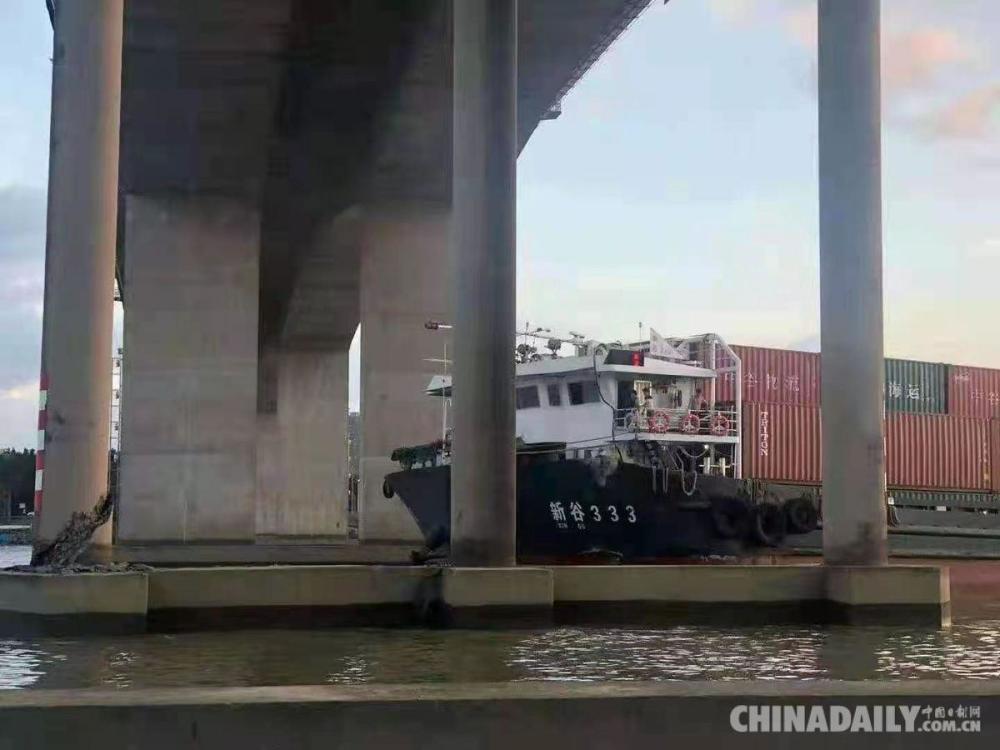 据广州海事局消息,2021年7月13日早上6点05分左右,从广州新港东江仓拟经浮莲岗水道、沙湾水道、容桂水道、虎跳门水道等驶往珠海高栏的内河集装箱船“新谷333”,在航经番禺沙湾水道北斗大桥时,触碰北斗大桥桥墩,造成北斗大桥一桥墩受损,“新谷333”船体轻微受损,未造成人员伤亡和水域污染。