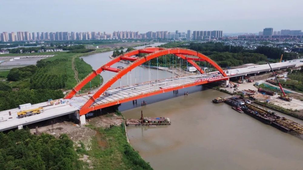 近日,记者在吴淞江大桥施工现场看到,整个桥体结构已经完工,桥面的144片混凝土预制板已经拼接完成,工人们正顶着烈日,在桥面进行护栏等附属结构的浇制。从施工方了解,最后的桥面护栏和沥青铺设等作业预计工期一个半月,整座大桥将于8月下旬完成施工,进入验收阶段。